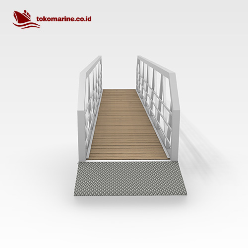 – Gangway Dermaga Apung aluminium marina lantai deck nya terbuat dari material yang cocok untuk outdoor dan anti korosi, lantai deck optional bisa menggunakan lantai WPC (Wood Plastic Composite) atau lantai grating fiberglass