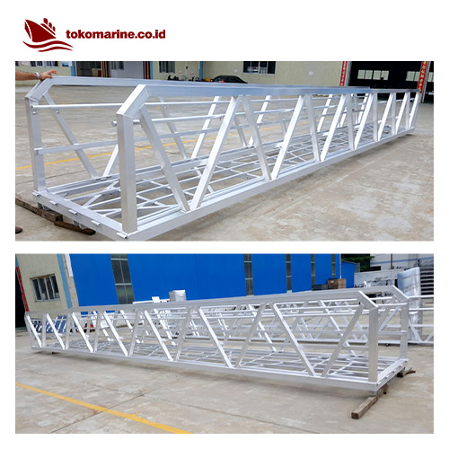 – Gangway Dermaga Apung aluminium marina strucktur deck profile nya terbuat dari material aluminium marine grade 6061-T6 sehingga anti korosi