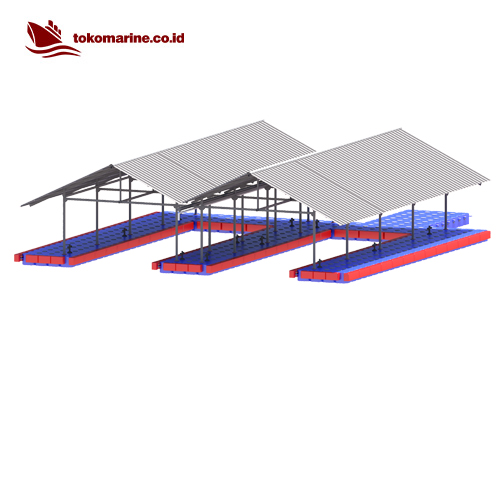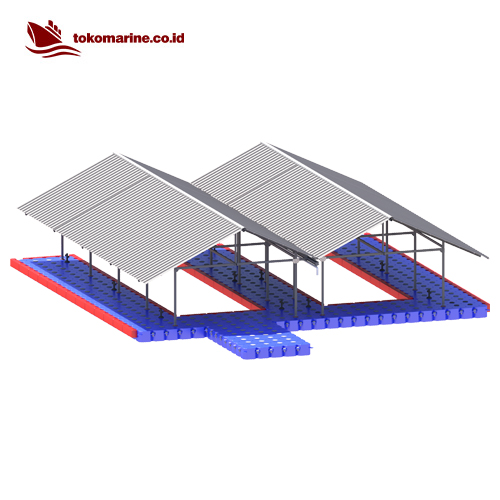 Garasi Boat Apung – Kubus Apung (Floating Boat Garage) adalah struktur terapung yang dirancang khusus untuk menyimpan, melindungi, dan mempermudah akses ke kapal atau perahu (biasanya speedboat, jetski, atau perahu kecil) di atas permukaan air. Struktur ini dibangun di atas modul kubus apung HDPE (HDPE float cube) dan dilengkapi dengan atap dan rangka baja ringan/galvanis/aluminium agar dapat menahan panas, hujan, dan sinar UV.