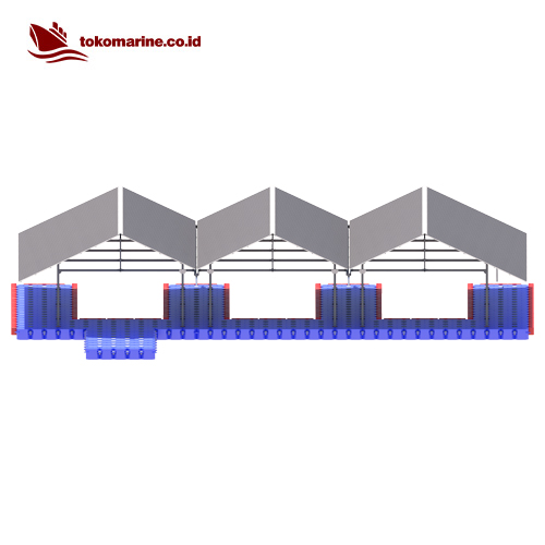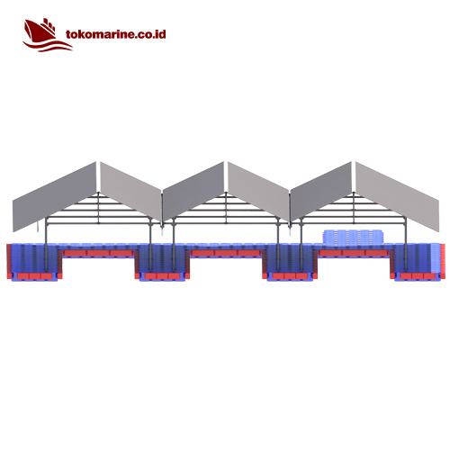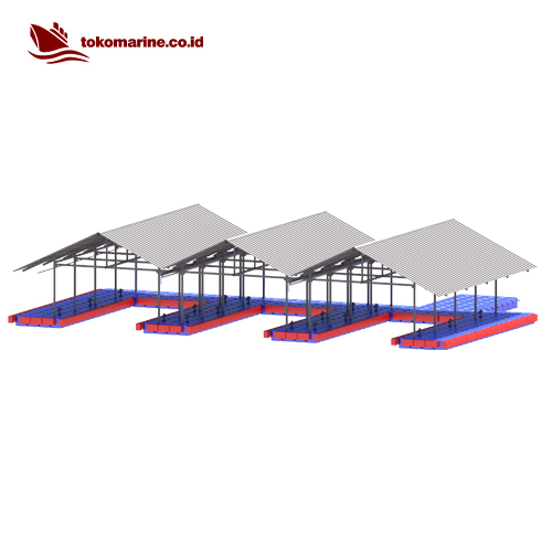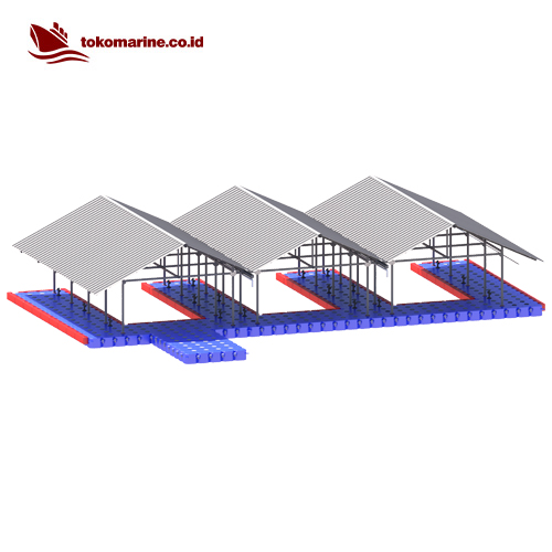 Garasi Boat Apung – Kubus Apung (Floating Boat Garage) adalah struktur terapung yang dirancang khusus untuk menyimpan, melindungi, dan mempermudah akses ke kapal atau perahu (biasanya speedboat, jetski, atau perahu kecil) di atas permukaan air. Struktur ini dibangun di atas modul kubus apung HDPE (HDPE float cube) dan dilengkapi dengan atap dan rangka baja ringan/galvanis/aluminium agar dapat menahan panas, hujan, dan sinar UV.