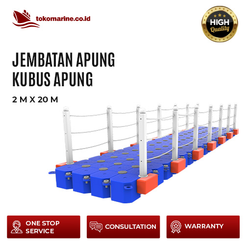 Jembatan apung kubus apung EVO Marine Float adalah produk inovatif yang dihasilkan dari research and develoment. Produk Jembatan apung kubus apung dibangun dari kumpulan kubus apung yang terbuat dari material HDPE (High-density polyethylene) sehingga tahan terhadap korosi dan ramah lingkungan. Kumpulan Kubus Apung HDPE dihubungkan dan dikunci oleh oleh connecting joint yang terbuat dari HDPE (High-density polyethylene). Jembatan apung kubus apung EVO Marine Float dilengkapi oleh accessories yang lengkap sehingga support untuk segala design Jembatan apung.