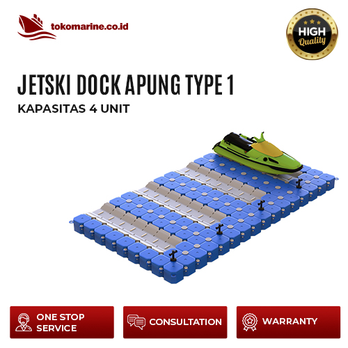 Jetski Dock Apung adalah infrastruktur terapung untuk tempat parkir jetski, dimana posisi jetski berada diatas jetski dock apung. Jetski Dock Apung ini digunakan agar jetski tidak selalu terapung ketika tidak digunakan sehingga kondisi bottom jetksi aman dari tiram. Jetski Dock apung untuk mengantisipasi jetski tidak terombang ambing dan membentur dermaga tempat jetski bersandar sehingga jetski tetap aman dan terawat.