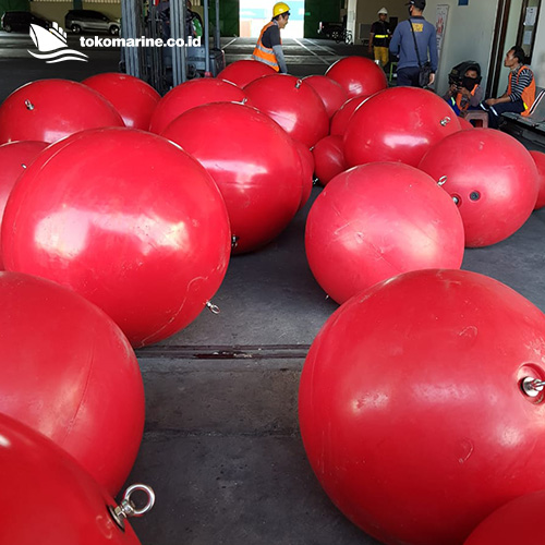 Mooring Ball Buoy adalah jenis pelampung berbentuk bola yang di gunakan untuk menambatkan kapal atau speedboat di area laut dalam. Mooring Ball buoy memiliki design dan berat yang di support oleh pemberat atau jangkar sedemikian rupa sehingga bisa menahan kapal agar tidak hanyut terkena ombak atau arus laut.
