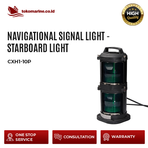 Navigational Signal Light – Starboard Light adalah salah satu bagian dari lampu navigasi kapal yang penempatan lampunya diletakkan di sisi kanan kapal, biasanya di letakkan di bagian atas sebelah ruang kemudi atau di letakkan di bagian atas sebelah kanan kapal agar sinar kapal dapat terlihat oleh kapal lain dari jarak yang cukup jauh.
