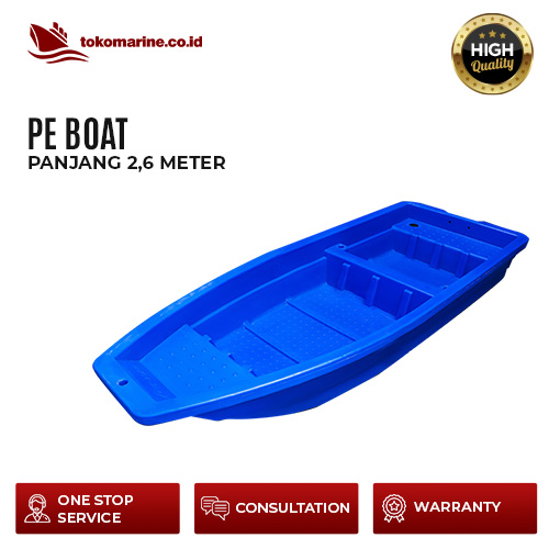PE Boat 2.6 meter adalah produk inovatif di bidang marine yang terbuat dari plastik LLDPE (Linear Low-Density Polyethylene) yang keunggulannya memiliki kekuatan dan daya tahan yang tinggi terhadap tusukan atau robekan dan benturan. PE Boat dengan brand EVO Marine Float yang terbuat dari LLDPE (Linear Low-Density Polyethylene) tahan terhadap korosi. sehingga memiliki life time yang lama dan mudah dalam perawatannya. PE Boat 2.6 meter bisa di gunakan untuk kapal sekoci dan kapal untuk aktifitas memancing.