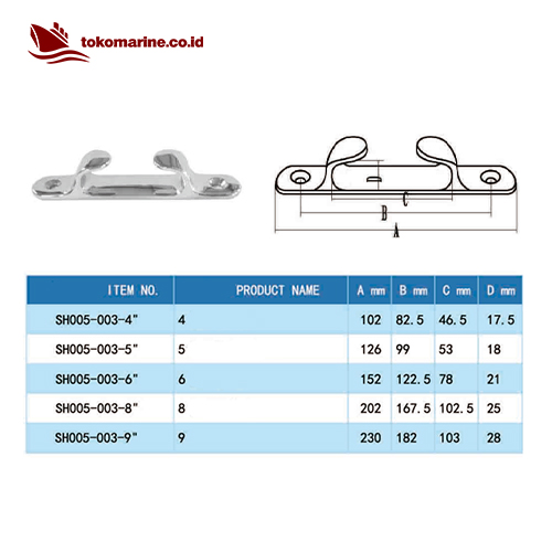 – Perlindungan Tali (Chafe Protection): Permukaan yang halus dan lebar (dimensi C) pada chocks ini mencegah tali bergesekan dengan tepian dek yang tajam, sehingga mengurangi kerusakan dan memperpanjang umur tali tambat.
